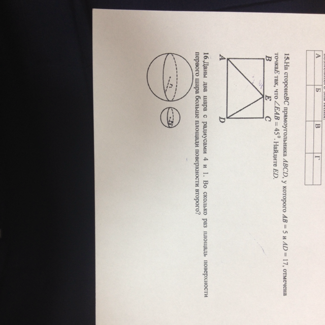 ∠АЕВ=90-45=45°⇒Δ АВЕ - равнобедренный ⇒АВ=ВЕ=5см