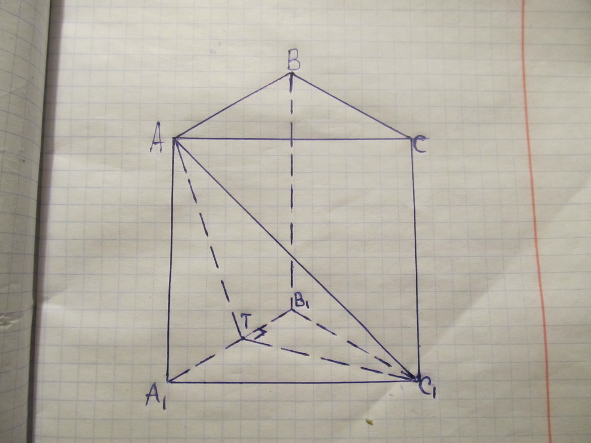 АТ^2=36+9=45, AC1^2=(6*корень из 2)^2=72, C1T^2=(3*корень из 3)^2=27; по т. обратной т. Пифагора 72^2=45^2+27^2, значит угол АТС1=90гр.; /////// б) угол АТА1 - линейный угол двугранного угла в тр-ке АА1Т; tgATA1=6/3=2, угол АТА1=arktg2. Ответ: угол АТА1=63 град.26 мин.