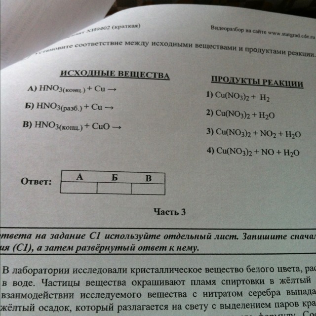 A) 4HNO3(конц.) + Cu = Cu(NO3)2 + 2NO2 + 2H2O