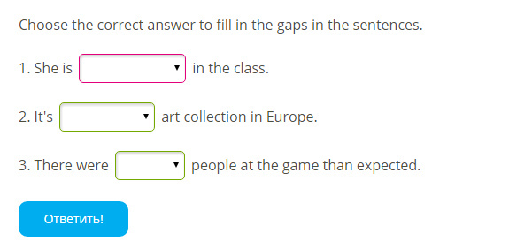 Выберите правильный ответ, чтобы заполнить пробелы в предложениях. Варианты