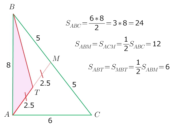 5) медиана делит треугольник на два равных по площади...