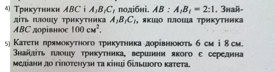 4) площади подобных треугольников относятся как квадрат коэффициента подобия)))
