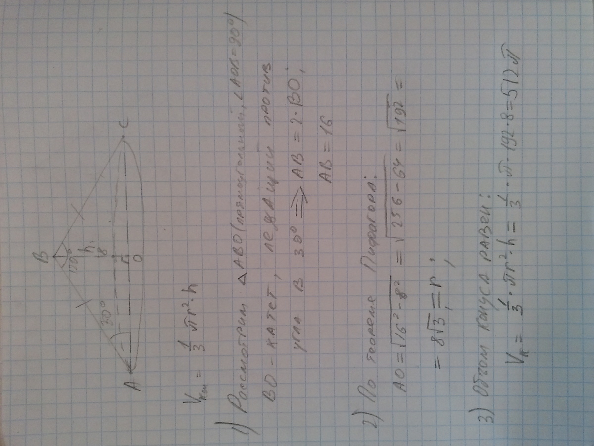 осевое сечение конуса равнобедренного , треугольник один из углов которого 120 градусов. Найдите объём конуса если его высота равна 2^3 см
