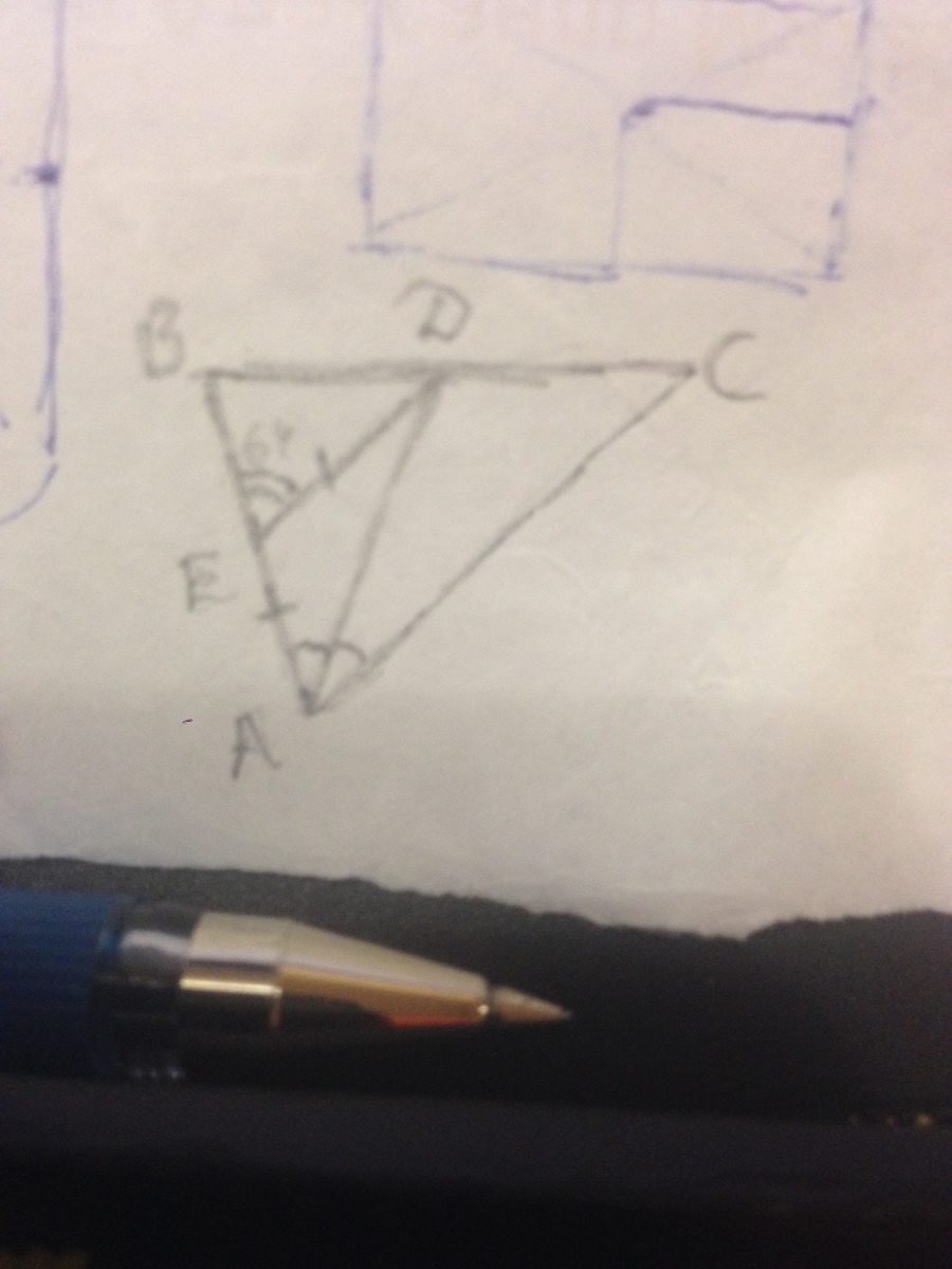 Отрезок AD- биссектриса треугольника АВС. Из точки D проведена прямая, пересекающая сторону АВ в точке Е так, что АЕ=ЕD. Найдите углы треугольника AED, если угол ВЕD=64 градуса