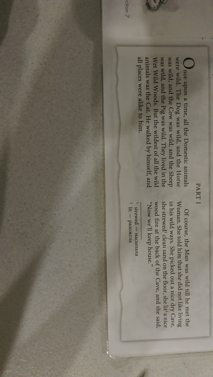 Однажды все животные были дикими. Собака была дикой, и лошадь была дикой, и корова была дикой, и овца была дикой, и свинья была дикой. Они жили во влажных диких лесах. Но самым диким из всех диких животных был кот. Он гулял сам по себе и все места были одинаковыми для него.
