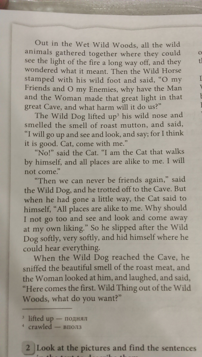 Дикая собака(волк походу) поднял свой нос и учуял запах жаренной баранины и сказал:"Я пойду и посмотрю. Кот пойдешь со мной?"