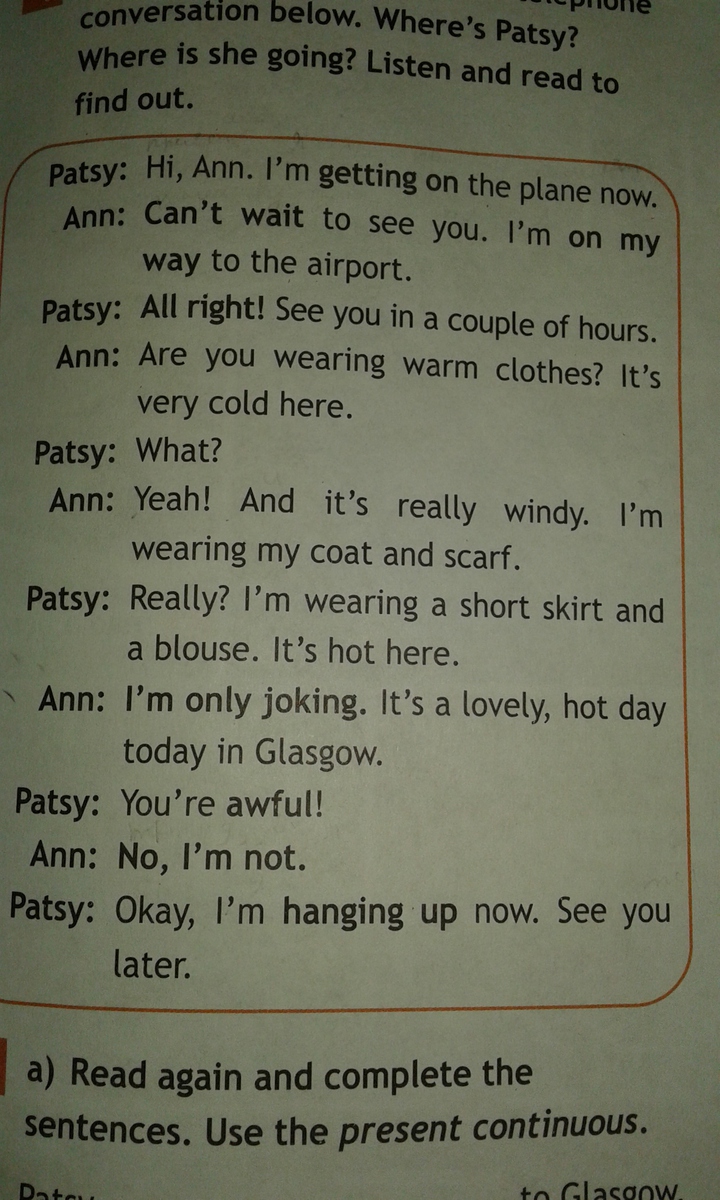 Patsy: Привет , Энн! Сейчас я сажусь в самолет.