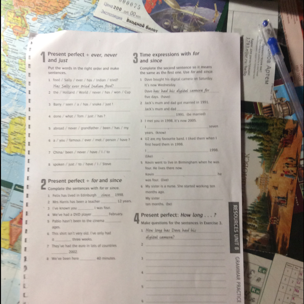 . 2- for, 3- since, 4-since, 5- for, 6- for, 7- since, 8- for
