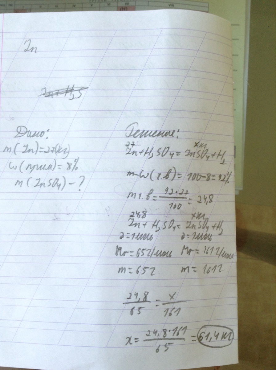 какова масса образовавшейся соли которая получается при растворении 27 кг цинка в серной кислоте если доля примесей в цинке составляет 8%