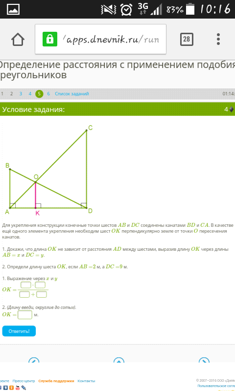 OK/AB = OP/BP; и OP/BO = CD/AB;