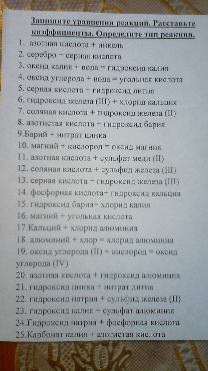 Запишите уравнения реакций.Расставьте коэффициенты. Определите тип реакций. Срочноооо! Помогите пожалуйста!!!