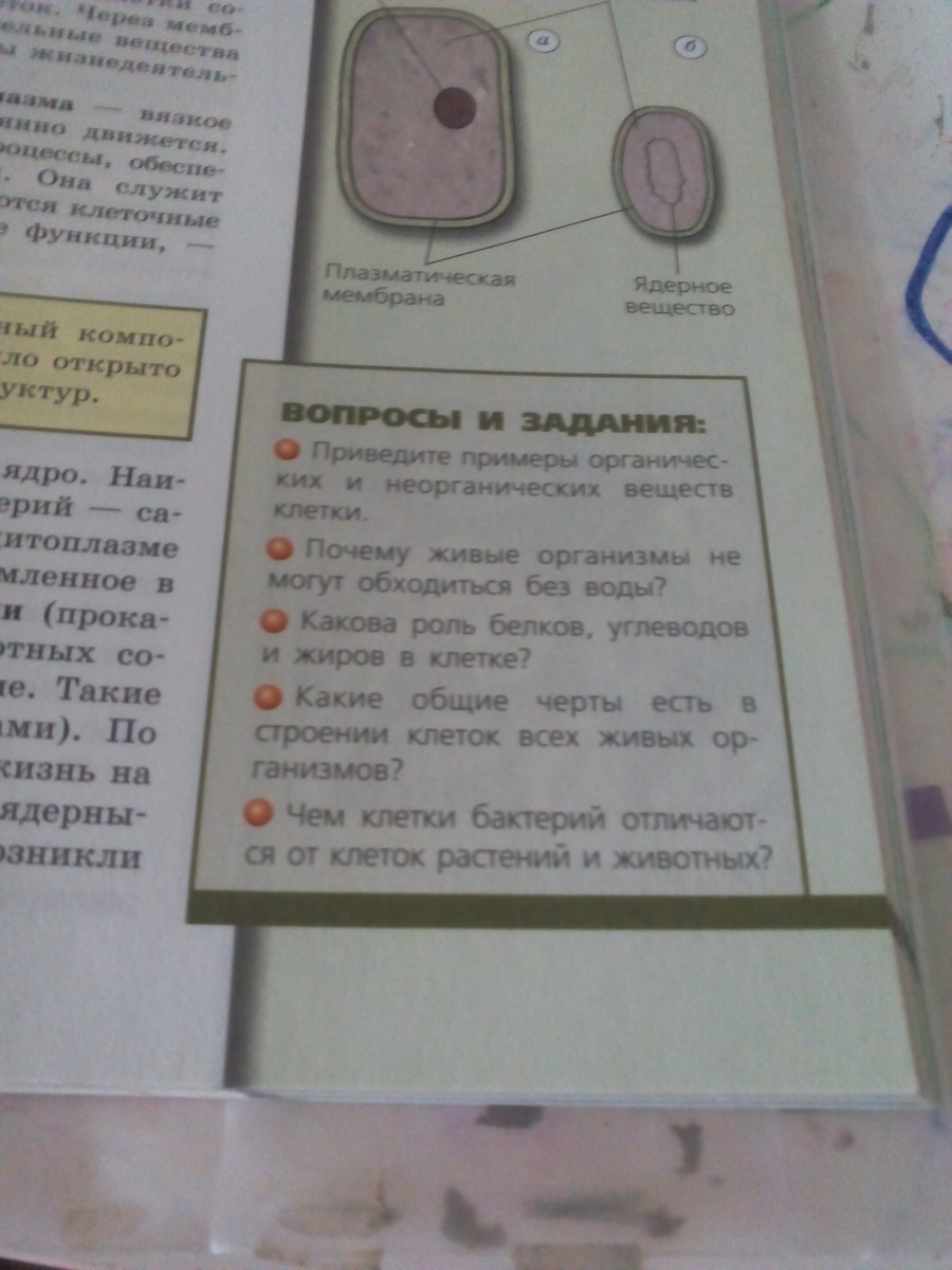 приведите примеры органических и неорганических веществ клетки