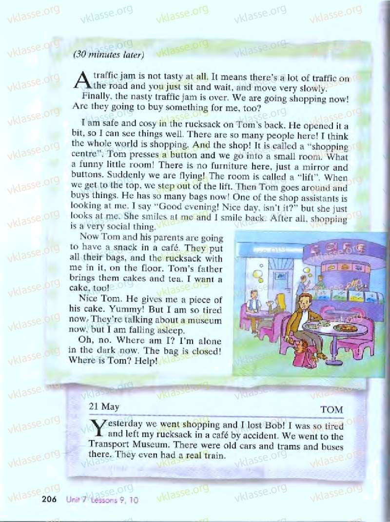 Мне безопасно и уютно в рюкзаке на спине Тома, он открыл это немного. так что я могу видеть хорошо. Тут так людно! Такое чувство, будто люди со всего мира совершают покупки. А магазин! Это называется "торговый центр. Том нажимает кнопку, и мы идем в небольшую комнату. Какая забавная маленькая комната! Там нет мебели, просто зеркало и кнопки. Внезапно мы летим! Это помещение называется лифт. Когда мы оказались на самом верхнем этаже. Мы вышли из лифта. Тогда Том пошел покупать вещи. У него так много пакетов прямо сейчас! Один из продавцов смотрит на меня. Я сказал: "Добрый вечер! Сегодня хороший день. Не так ли?" но она просто смотрит на меня. Она улыбнулась мне и я улыбнулся ей в ответ. В конце концов, покупки очень социальная вещь.