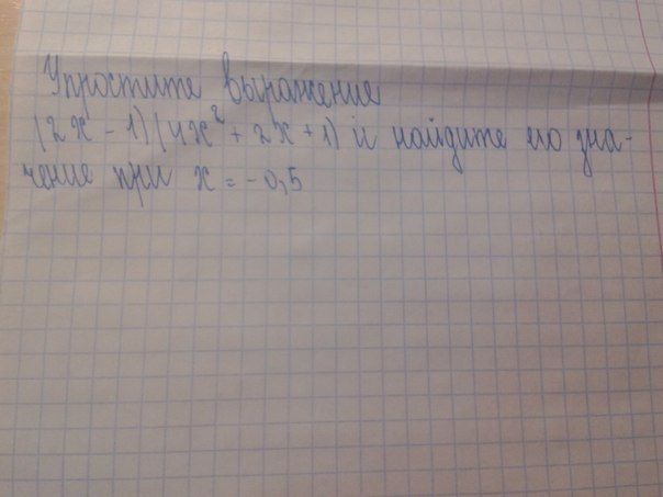 (2х-1)(4х²+2х+1)=(2х-1)(2х+1)²=(2*(-0.5)-1)(2*(-0.5)+1)²=-2*(-1+1)²=0