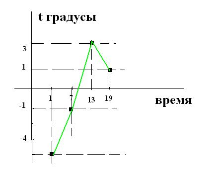 постройте график суточного хода температуры воздуха по таким данным: в 1 часе -4 градуса, в 7 часах -1 градус, в 13 часах +3 градуса, в 19 часах +1 градус. по вертикалmyjq оси откладывайте температуру воздуха (1 см= 1 градус), по горизонтали-время суток (1.5 см= один срок наблюдений).