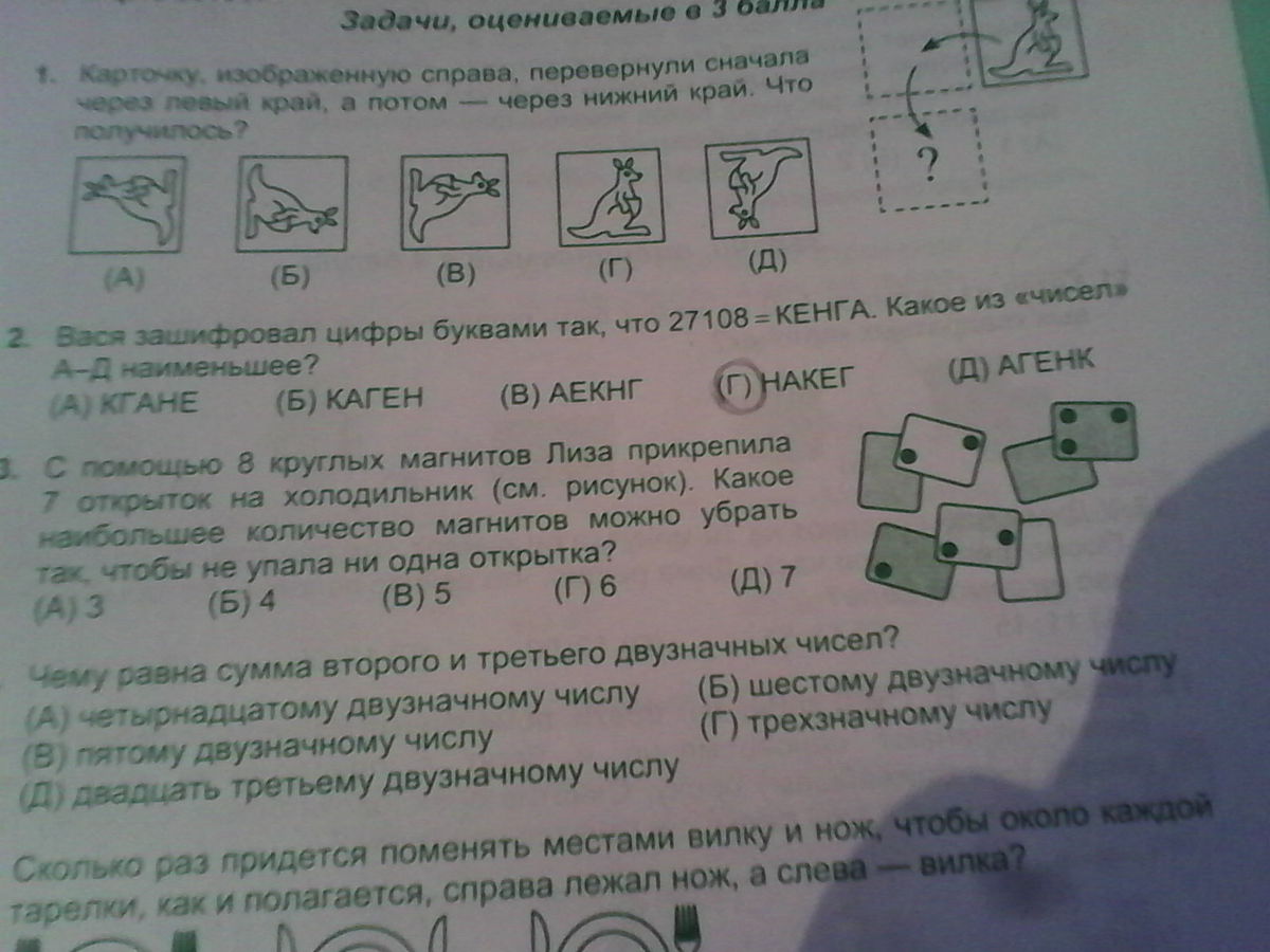 В 3 задании , я бы убрал 6 магнитов. Если в ряд повесить 4 открытки, а снизу под ними ещё 3 открытки, то хватит 2 магнитов, ( закрепляем их на уголках).