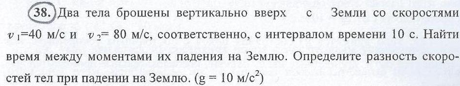 Тела проходят некий путь т.е поднимаются до определённой высоты. Затем, во время полёта тел их скорости соответственно уменьшаются. В конце концов как правило тела достигнут максимальной высоты, начнут падать на Землю, проходя такоё же путь. Тела падают по действием силы тяжести, слдеовательно на них не действовали не какие силы, при этом тела свободно падают т.е. во время падения они находятся в состоянии невесомоти. При этом их скорости будет равнятся ускорению свободного падения т.е. 9,807 м/с². Сделая вывод получим что, разность их скоростей равна нулю так как падают под действием одной силы.