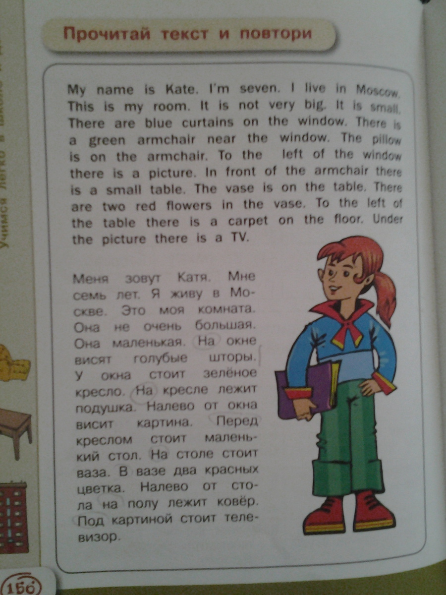 My flat is very big. It has more than 4 rooms. The largest room is my father's and mother's room. I have got a sister, her room is small and pink. There are a lot of flowers on the walls. There are many pictures in our flat, because my parents love them. My room has a bed, a wardrobe, CDs, a chair, a big carpet. These walls are black and green. I love them and my friends too. We have a big sofa in the living room.