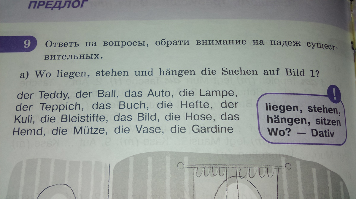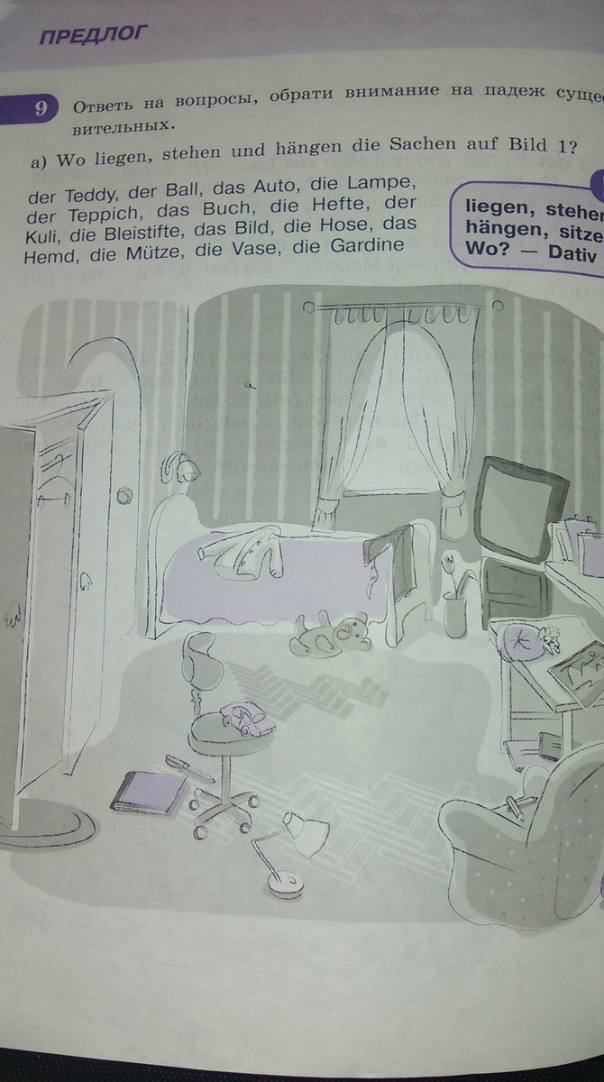 помогите поставить предложения в актикль wo -dativ и написать по немецки .Тедди лежит на полу .Ауто стоит на стуле . Книга лежит на полу .Лампа стоит на полу .И Т Д