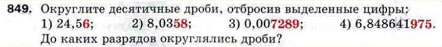 округлить десятичные дроби,отбросив выделенные цифры :24,56;8,0358;0,007289;6,848641975до каких разрядов округлялись дроби?