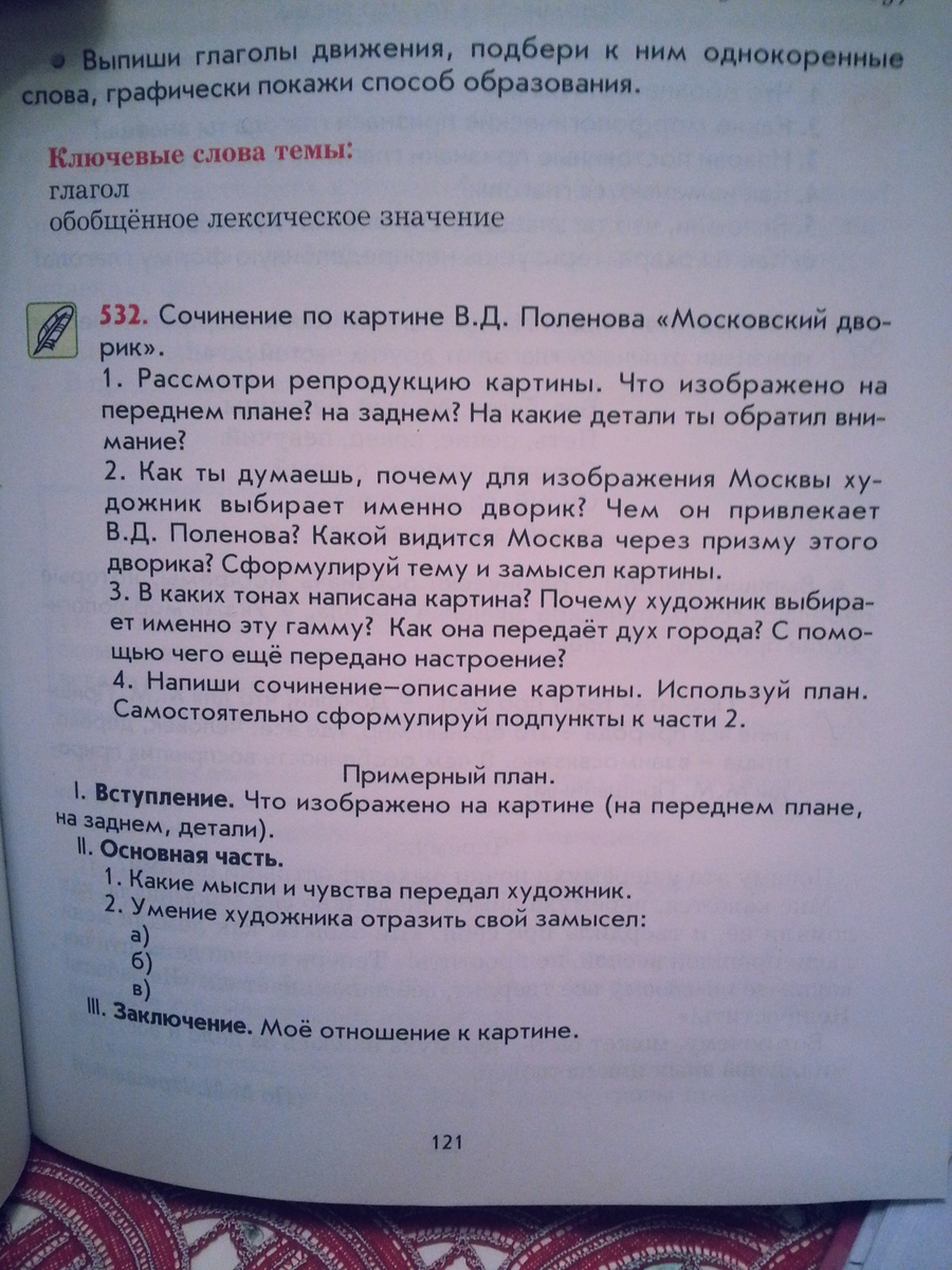 Передо мной репродукция картины В.Д.Поленова "Московский дворик". Смотришь на эту картину и создается впечатление, что художник рисовал ее из окна соседнего дома. Обычный московский двор, каких, наверно, много в Москве. Но этот особенно дорог художнику. Может в нем прошло его детство?