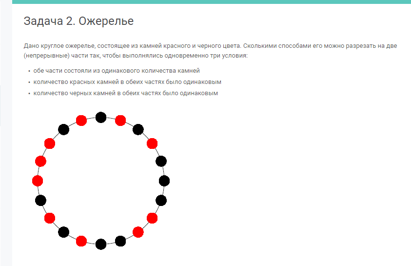 надо разрезать ожерелье так чтобы на обоих сторонах было одинаковое количество бусин