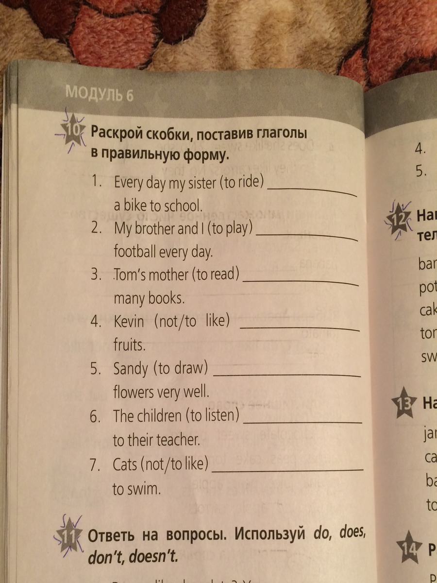 Без to пишешь туда: riding. И так добавляй везде, только без to.