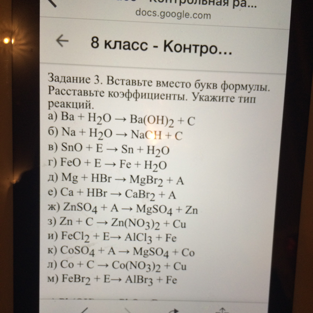 З 1-12 тип реакцій -заміщення (замещение)