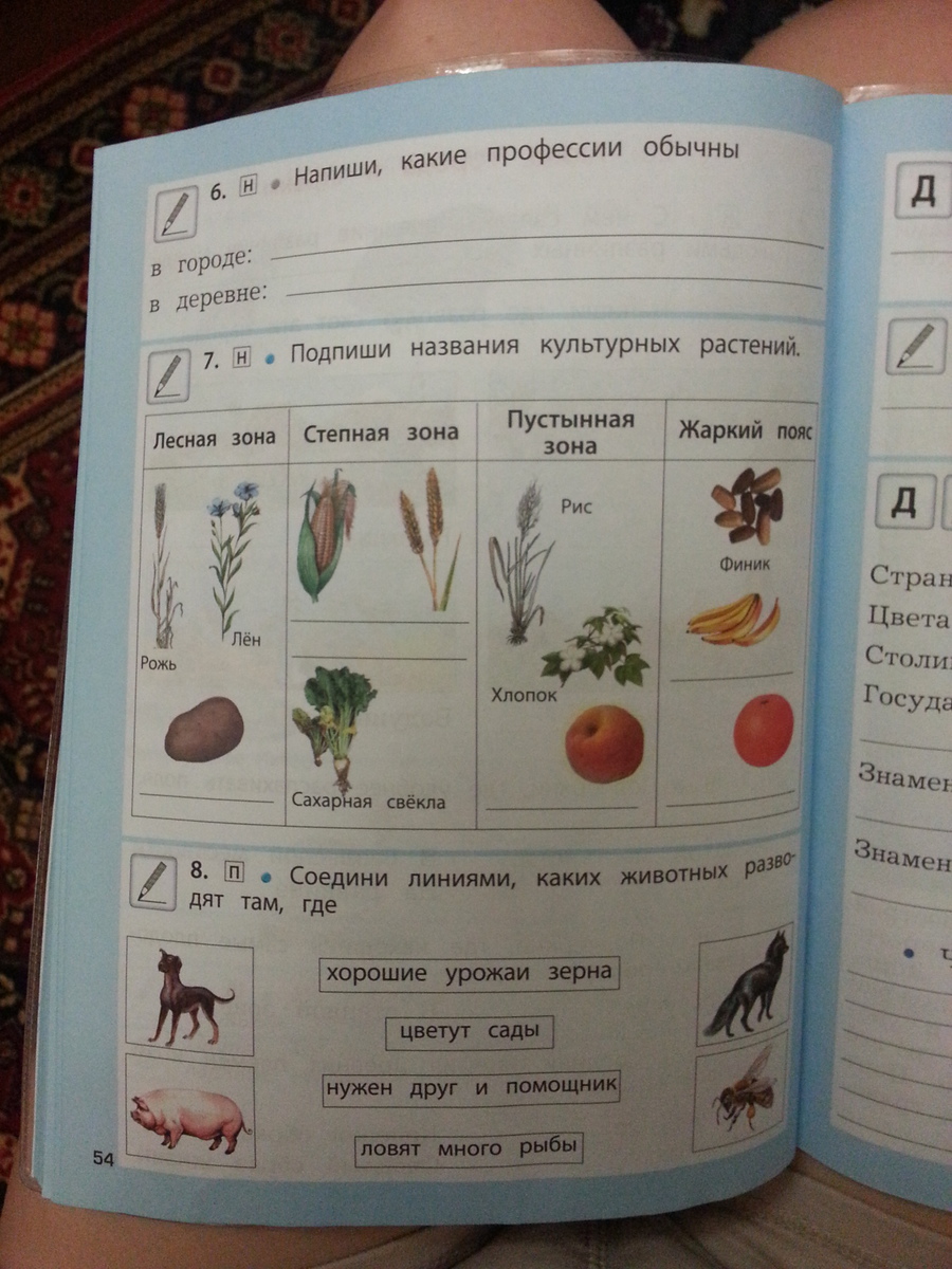 Лесная зона - картофель , степная зона - кукуруза , рожь , пустынная зона - яблоко , жаркий пояс - апельсин .