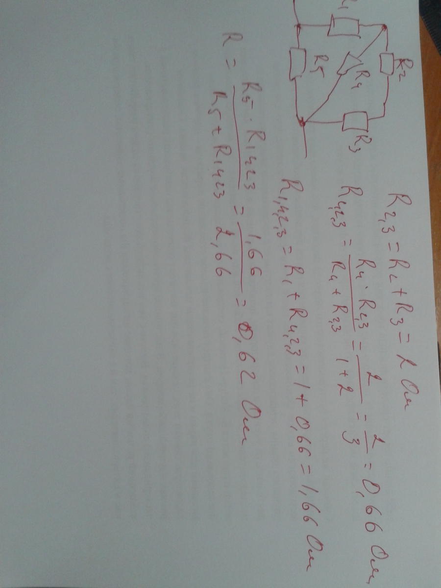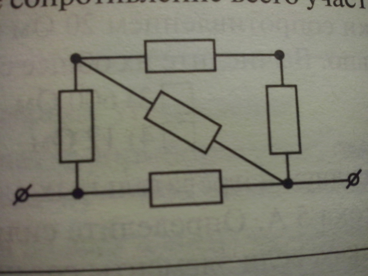 помогите, пожалуйста, с физикой. очень прошу! На рисунке приведена схема участка электрический цепи. Сопротивление каждого из резисторов равно 1 Ом. Найдите общее сопротивление всего участка.