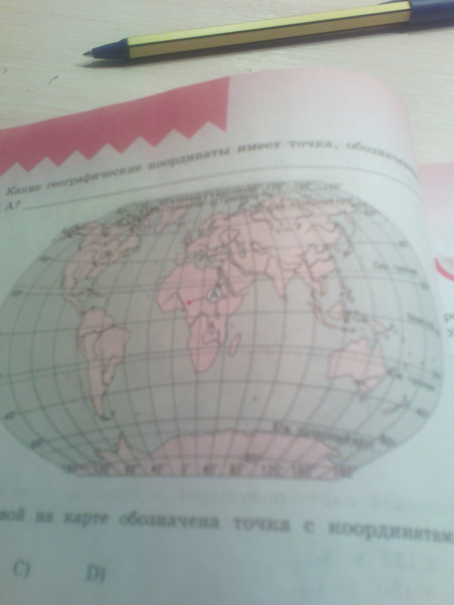 какие географические координаты имеет точка обозначенная на карте буквой А?