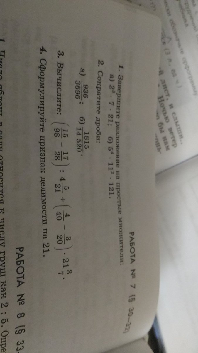 №4 число 21 это произведение чисел 3 и 7, значит , если число делится и на 3 , и на 7, то оно делится и на 21