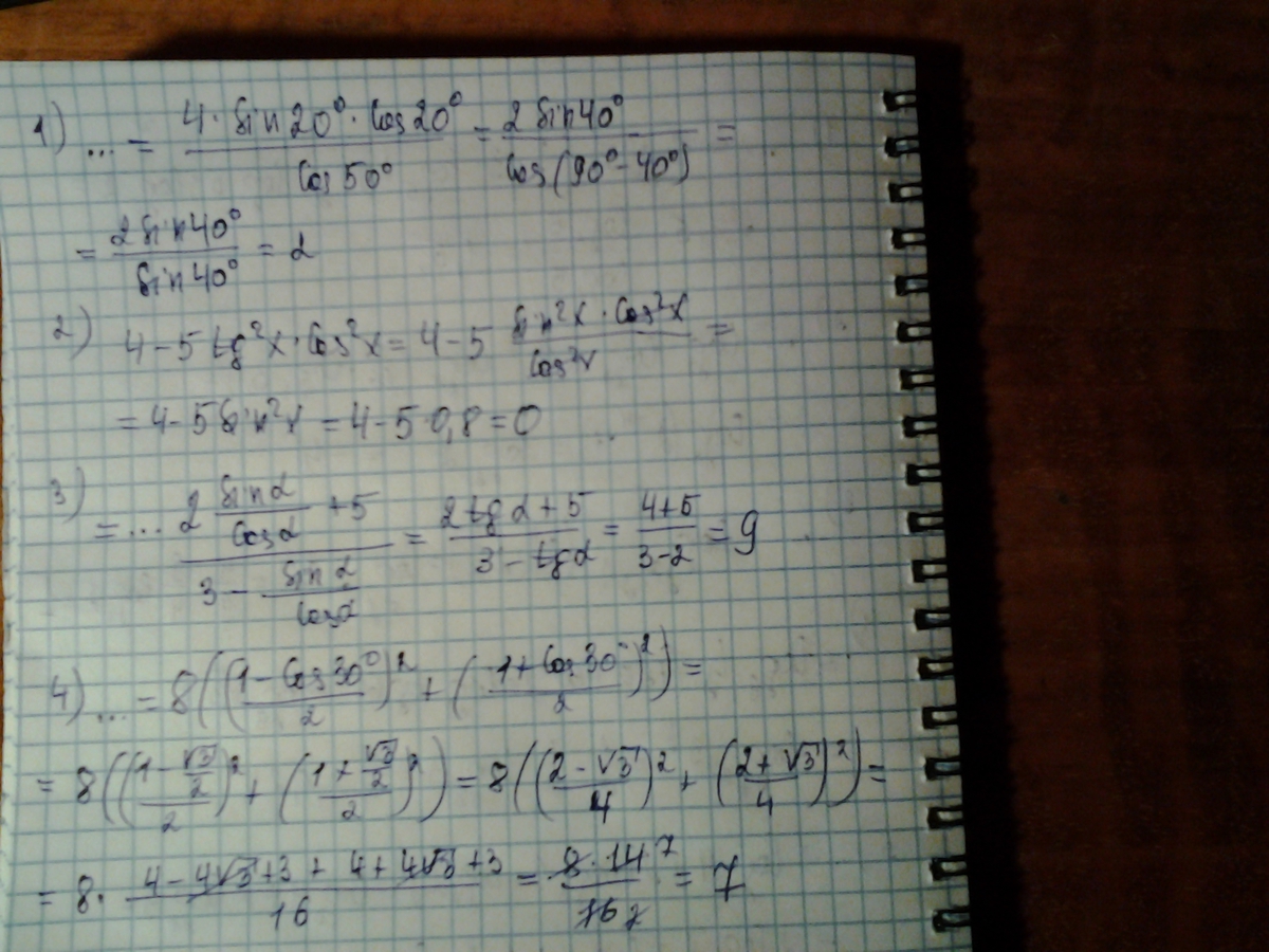 2. 4 - 5·tg²x·cos²x = 4 - 5·sin²x = 4 - 5·0,8 = 0
