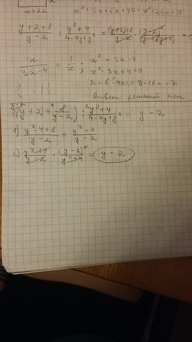 1. ((y+2)(y-2)+8)/(y-2)=