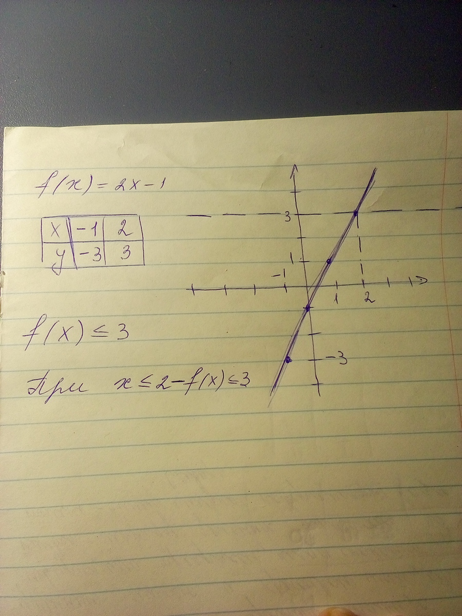 Постройки график функции f(x) = 2x - 1 и определите по графику, при каких значениях аргумента f(x) ≤ 3.