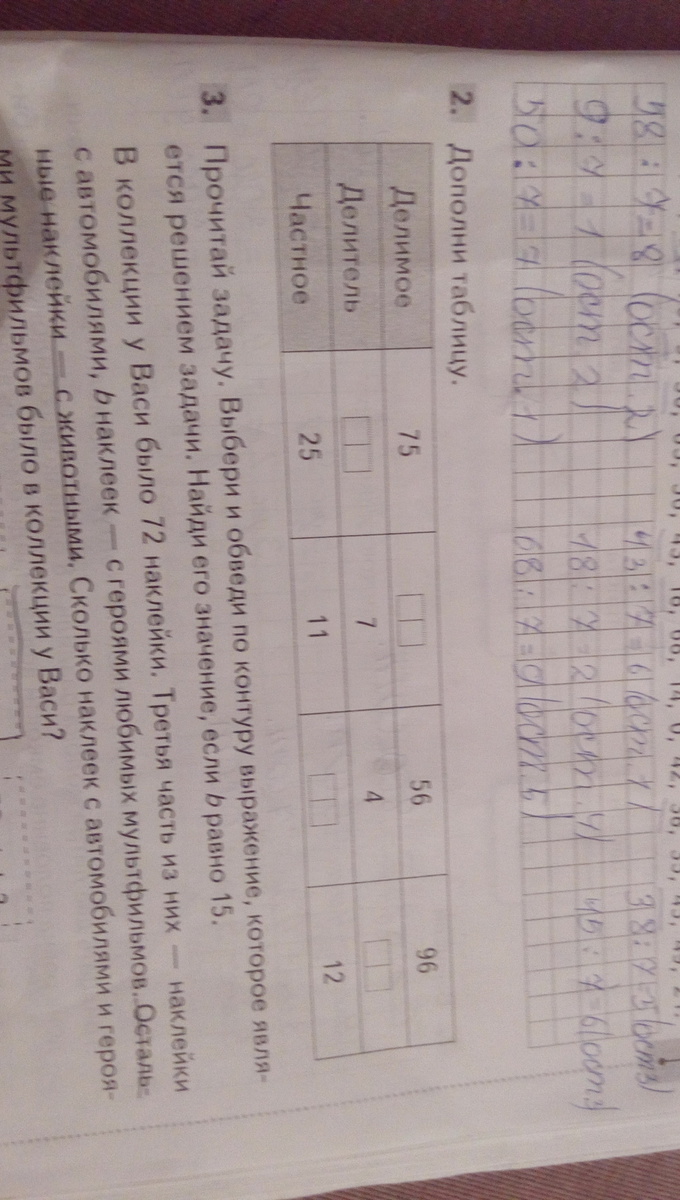 75:3=25, 77:7=11, 56:4=14, 96:8=12,