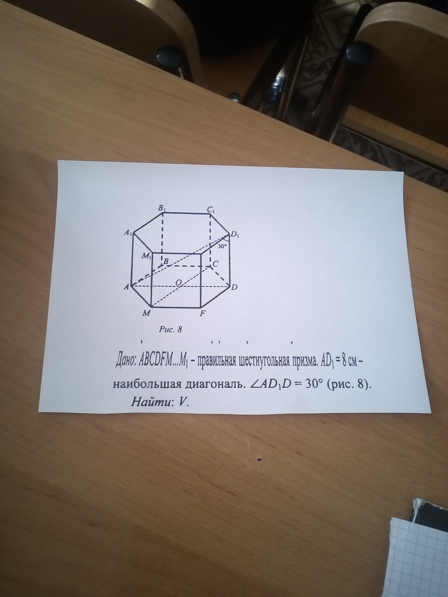 AD= 1/2*8 = 4 см. DD₁ = 8 * cos 30° =4√3(высота призмы).