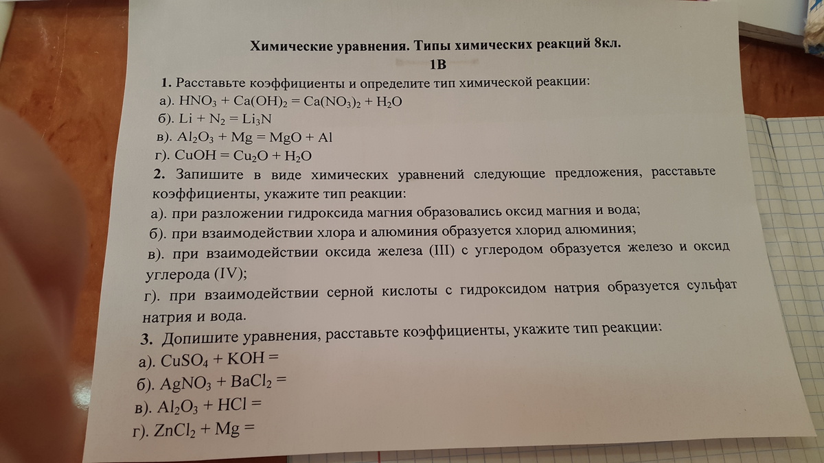 г) cu(oh)2 (в задании ошибка) = cu2o + h20 - разложение