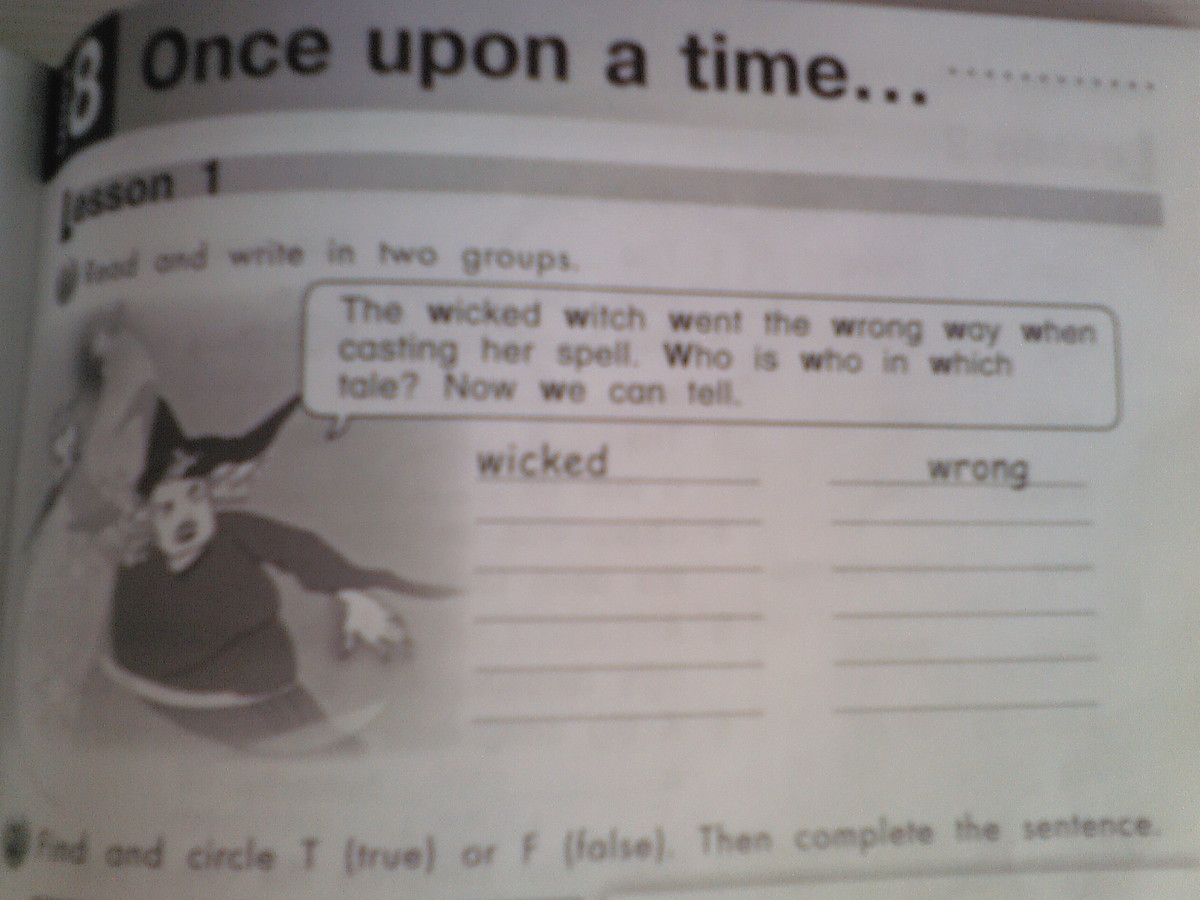 The wicked,witch,went,the wrong. way when casting her speel. Who is who in which tale? now we can teel.