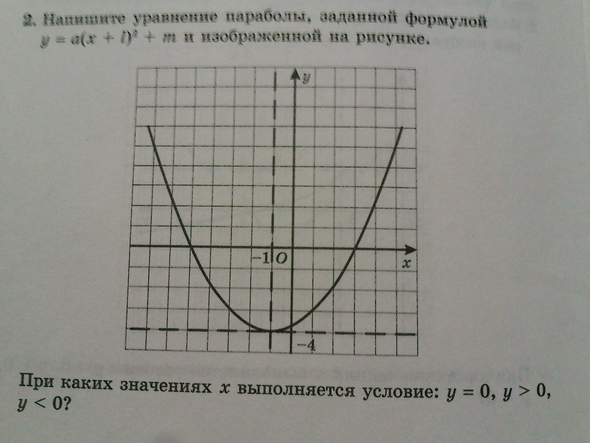 Так как парабола смещена на 1 единицу влево, то l=1, так как смещена на 4 единицы вниз, то m= -4