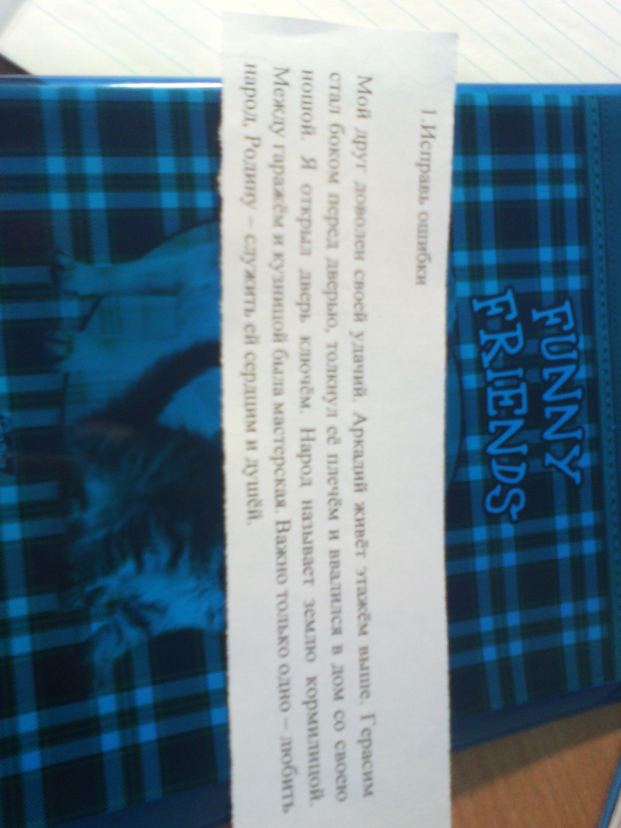 Мой друг доволен своей удачей. Аркадий живёт этажом выше. Герасим встал боком перед дверью, толкнул её плечом и повалился со своей.. (я слово не поняла). Я открыл дверь ключом. Народ называет землю кормилицей. Между гаражом и кузницей была мастерская. Важно только одно -- любить народ. Родина - служить ей сердцем и душой.
