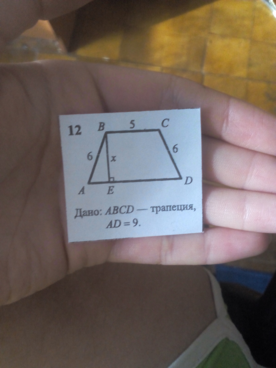 АВСД-равнобедренная трапеция.АЕ=(9-5):2=2см