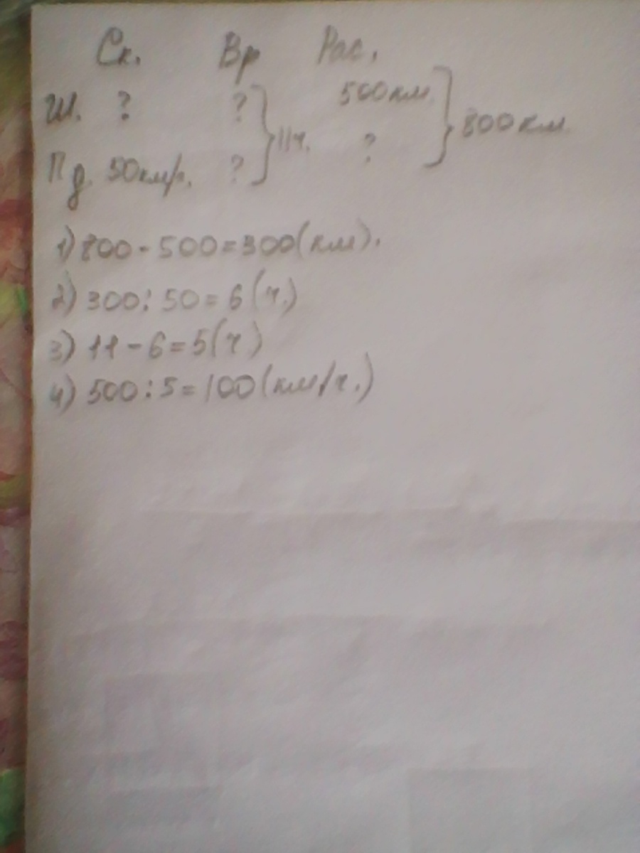 Ответ:100 км/ч-скорость по шоссе; 5 ч-время по просел.дороге