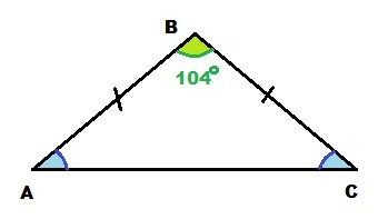 А1. Один из углов равнобедренного треугольника равен 104 градусам. Найдите два других угла треугольника.
