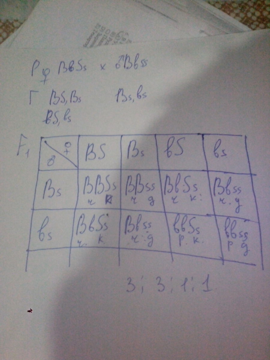 У кошек ген чёрной окраски шерсти (В) доминирует над геном рыжей окраски (в), а ген короткой шерсти (S) доминирует над геном длинной шерсти (s).