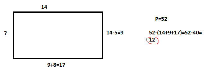 периметр 4-хугольника равен 52 см .одна сторона равна 14см,вторая на 5 см меньше первой,а третья на 8 см больше второй.чему равна длина его четвертой стороны?