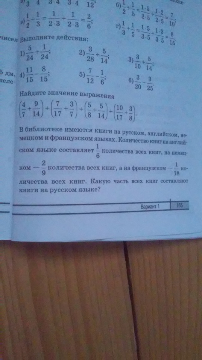Находим книги на русском языке: 18/18 - 3/18 - 4/18-1/18 = 10/18=5/9