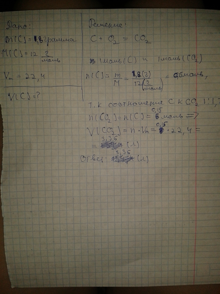 для восстановления углекислого газа потребовалось 1,8 грамм угля. Объем образовавшегося газа (н.у.) составляет??? помогите пожалуйста!!!!