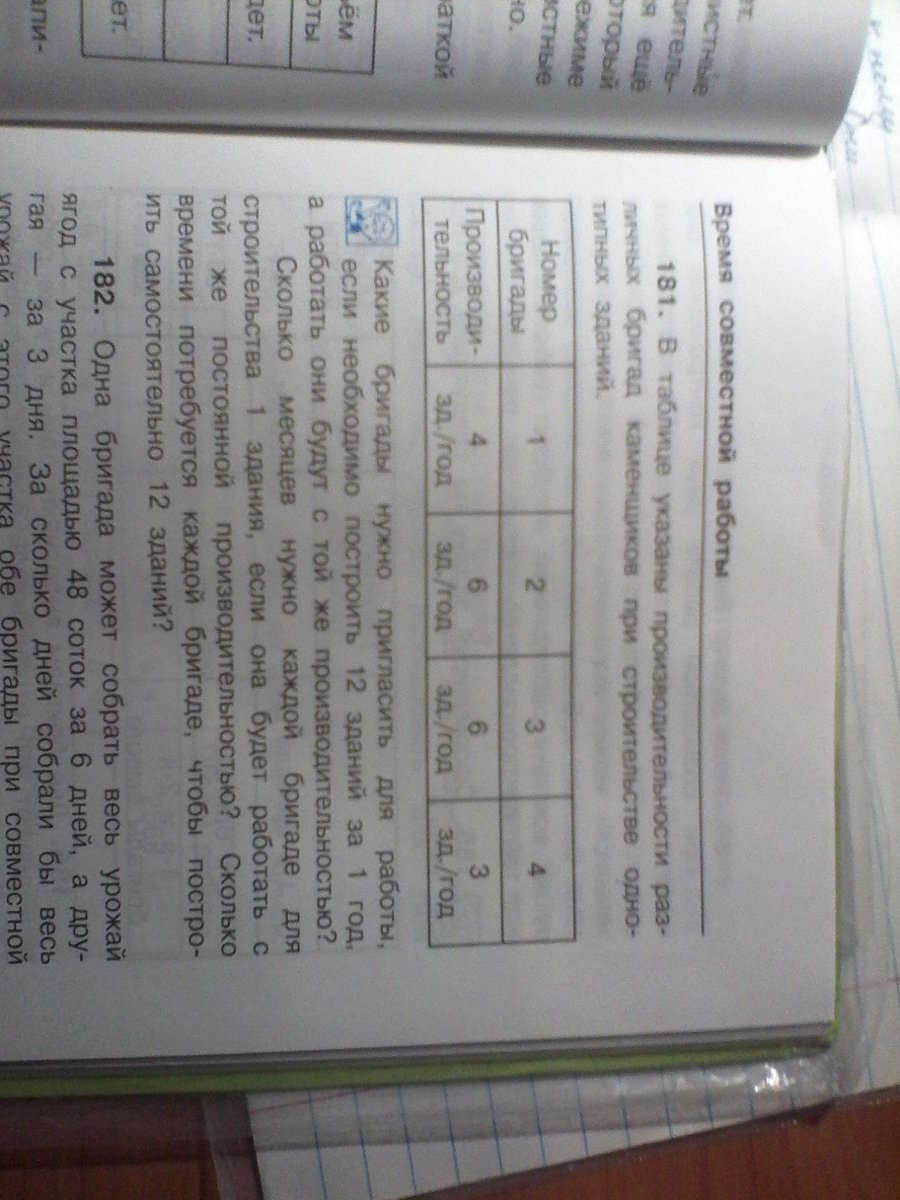 1) 12зд. : 4зд = 3(года) потребуется бригаде №1 для строительства 12 зданий