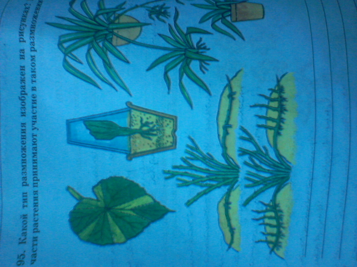 1)Какой тип размножения изображён на рисунках?Какие части растения принимают участие в таком размножении?(рисунок во вложении)